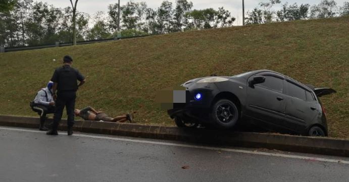 SEREMBAN: Seorang lelaki cuba melarikan diri dengan memandu kenderaannya secara melulu sebelum terbabas dalam kejadian kejar mengejar dengan pihak polis di Jalan Persiaran Utama S2/1, di sini semalam.