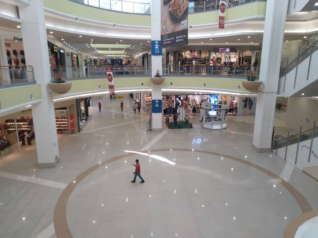 Suasana kelihatan lengang, tidak bersesak dan tiada kelibat kanak-kanak dibawa ke pusat beli-belah pada hari pertama pelaksanaan SOP Perintah Kawalan Pergerakan (PKP) 3.0 yang diperketatkan.