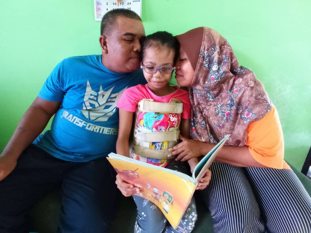 “Cuma dia ada masalah tulang belakang, buat masa ini tidak ketara tetapi akan dapat dilihat bila sudah baligh nanti. Disebabkan itu, dia terpaksa memakai baju khas sehingga kami kasihan apabila cuaca panas kerana dia akan berpeluh dan selalu merungut tidak selesa namun ia untuk kebaikannya,” katanya ketika ditemui di Bandar Penawar di sini semalam.