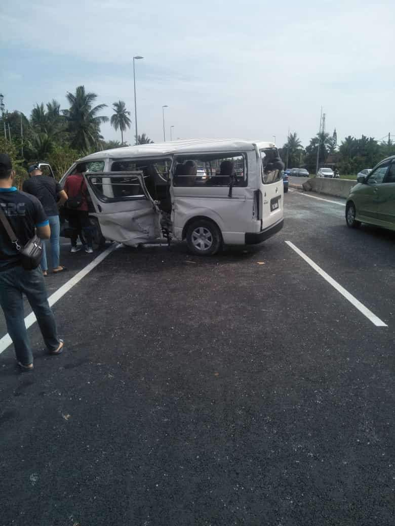 “Apabila tiba di lokasi kejadian, tiba-tiba van terbabit hilang kawalan lalu terbabas ke tengah jalan dan melanggar penghadang konkrit yang berada di tengah jalan.