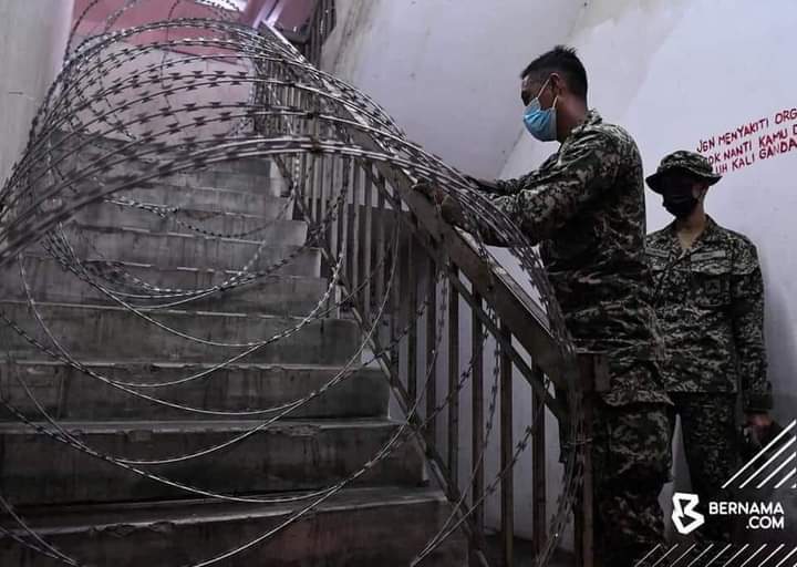 Sebelum ini melaporkan tangga Blok C, Projek Perumahan Rakyat (PPR) Kampung Baru Air Panas telah diletakkan kawat duri bagi mengelakkan penduduknya keluar masuk dari blok berkenaan berikutan penguatkuasaan Perintah Kawalan Pergerakan Diperketatkan (PKPD).