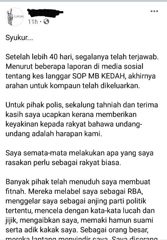 “Menurut beberapa laporan di media sosial tentang kes langgar SOP Menteri Besar Kedah, akhirnya arahan untuk kompaun telah dikeluarkan.