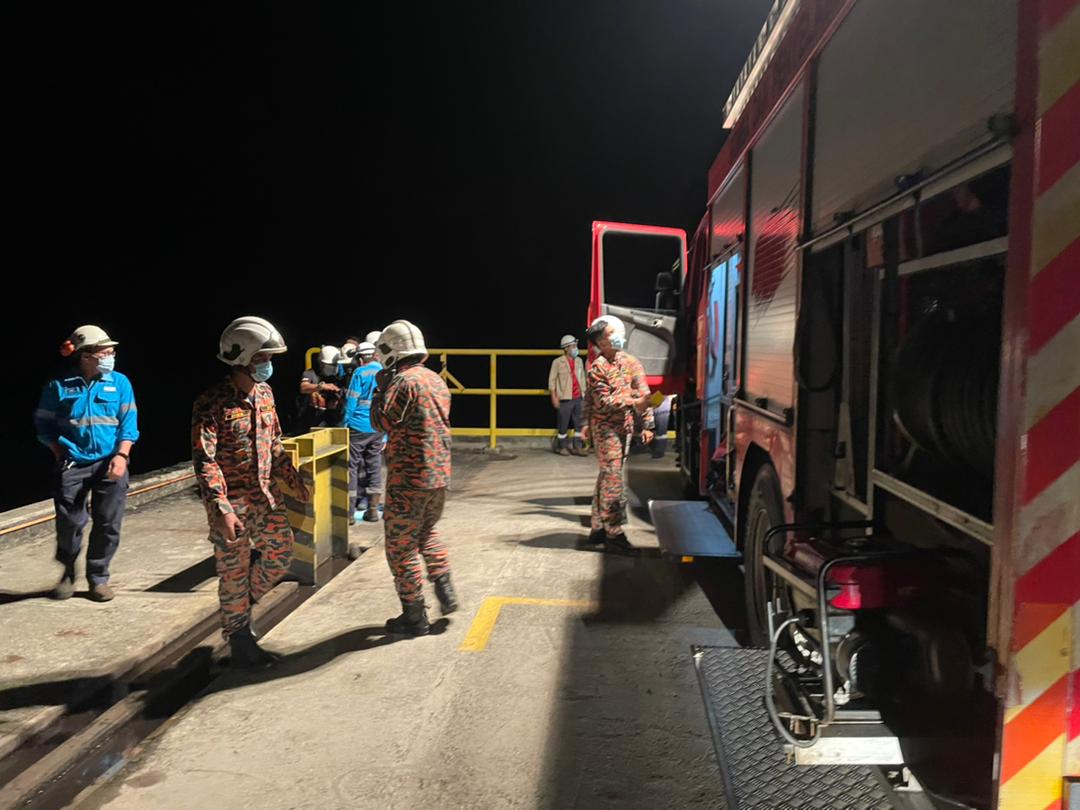 Menurutnya, pihak bomba dimaklumkan ketika kejadian terdapat lima orang yang sedang memunggah arang batu di jeti berkenaan.