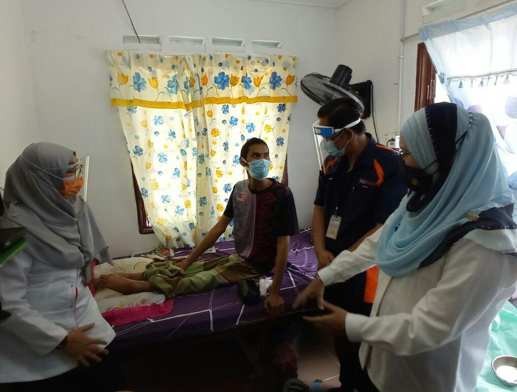MERSING: Seorang penduduk di Perkampungan Orang Asli Tanah Abang di sini yang terlantar sakit sejak 28 tahun lalu terharu apabila menerima suntikan vaksin Covid-19 di rumahnya hari ini.