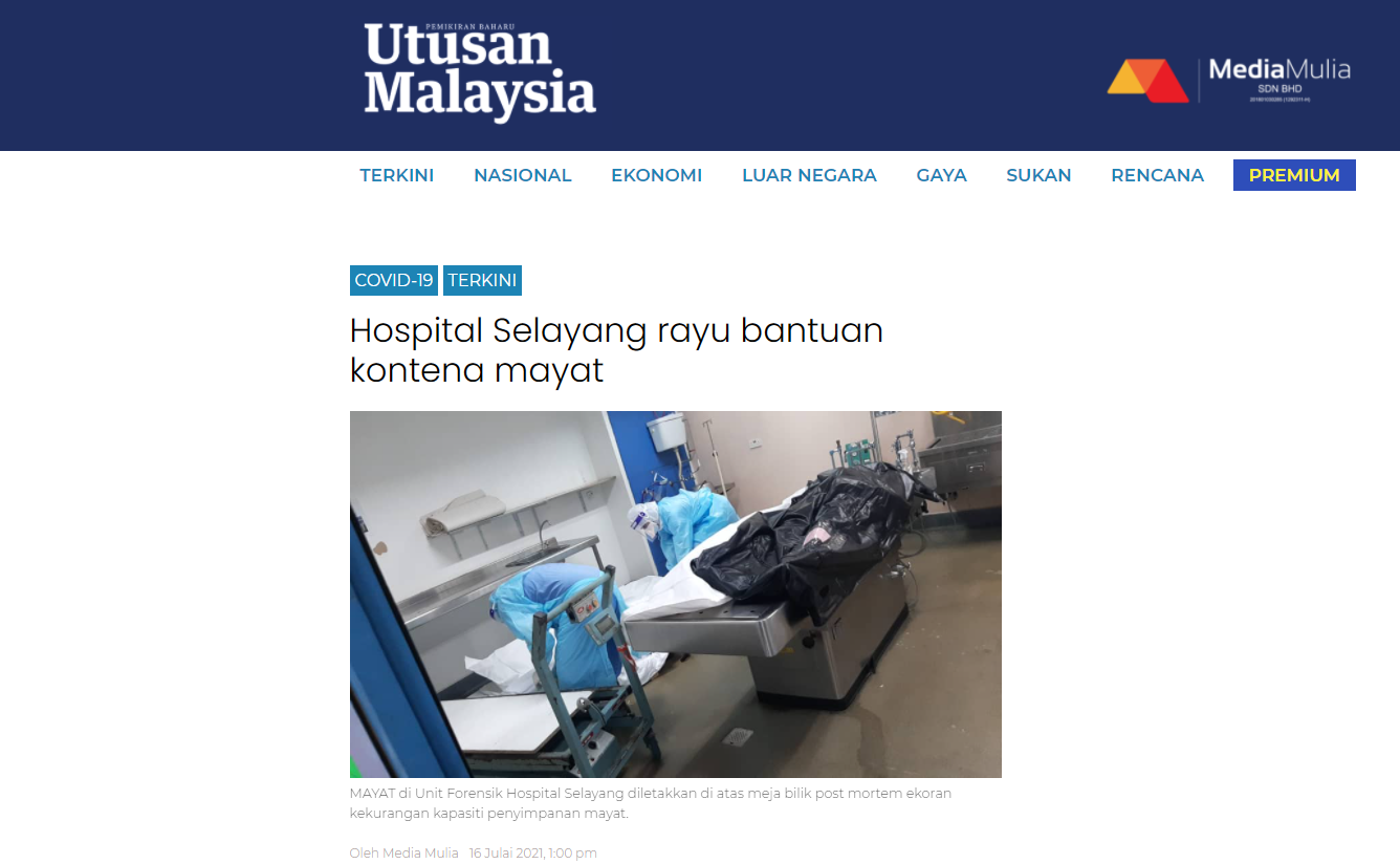 Terdahulu, Utusan Online melaporkan, sumber dalaman hospital berkenaan mendakwa kapasiti di unit forensik hospital itu tidak dapat menampung jumlah mayat ketika ini berikutan jumlah mayat yang diterima semakin meningkat setiap hari susulan pandemik Covid-19.