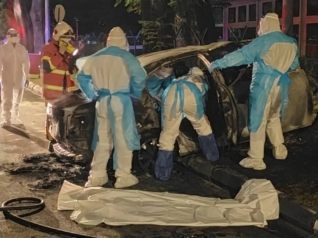 Dalam kejadian kira-kira pukul 2.45 pagi itu, tiga individu ditemukan dalam keadaan rentung selepas kereta jenis Toyota Vios yang dinaiki mereka terbakar dipercayai merempuh sebatang pokok di tepi Jalan Masjid Negeri.