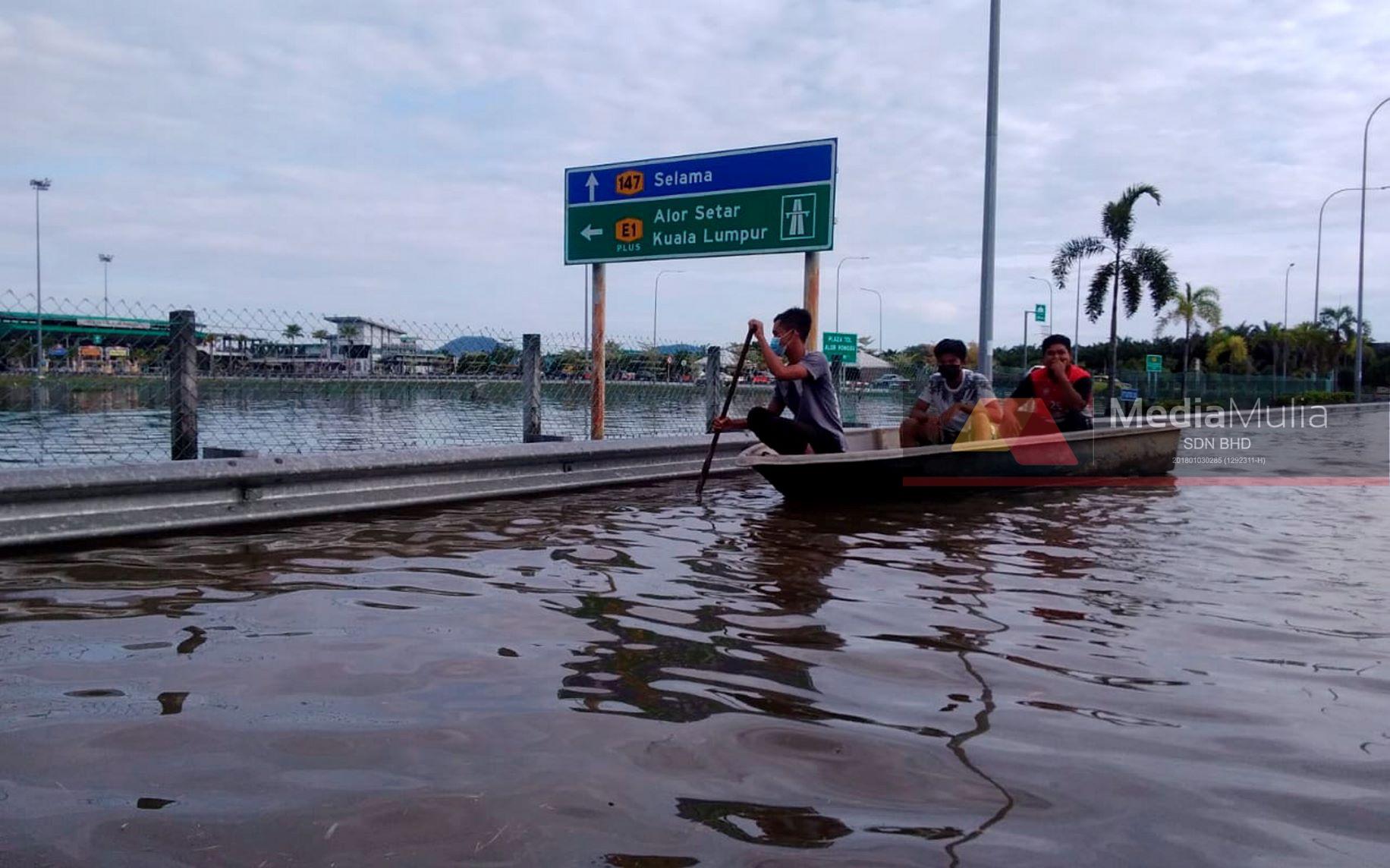 Paras air yang tinggi menyebabkan penduduk terpaksa menggunakan sampan untuk melalui kawasan tersebut.