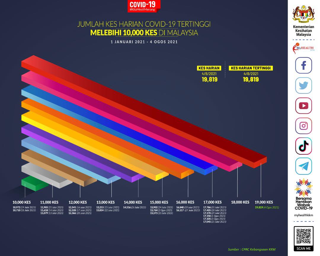 Ini merupakan kes paling tinggi dicatatkan sepanjang Covid-19 melanda negara.