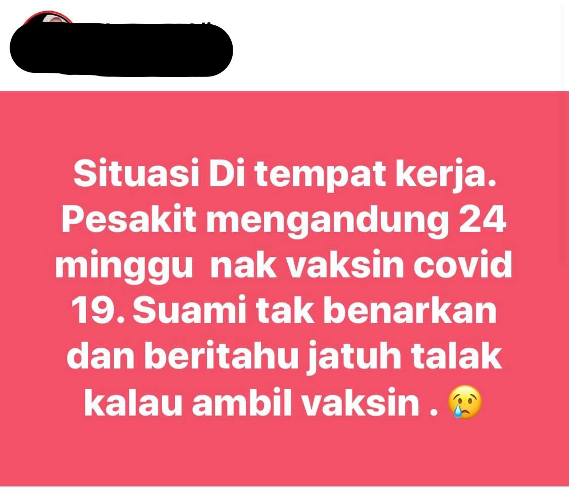 PETALING JAYA: Lagi kes ‘diugut’ jatuh talak jika ambil vaksin.