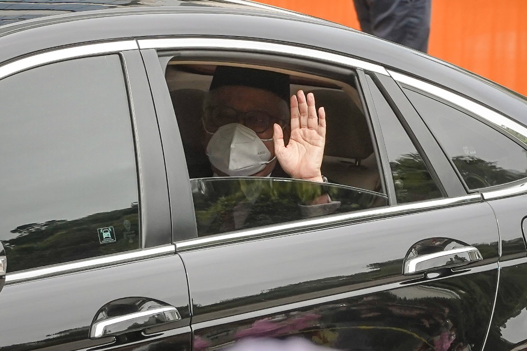 PETALING JAYA: Kereta yang membawa Ahli Parlimen Pekan, Datuk Seri Najib Tun Razak meninggalkan Istana Negara selepas sesi menghadap Yang di-Pertuan Agong, Al-Sultan Abdullah Ri’ayatuddin Al-Mustafa Billah Shah.