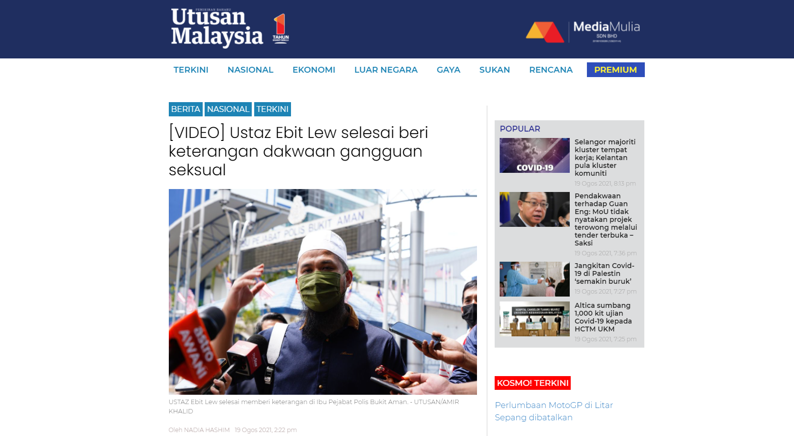 “Polis mengesahkan telah merakam keterangan Ebit Lew berhubung kes gangguan seksual. Orang ramai dinasihatkan untuk tidak membuat sebarang penyebaran apa-apa jua bahan yang boleh menjejaskan siasatan pihak polis,” katanya dalam satu kenyataan di sini hari ini.