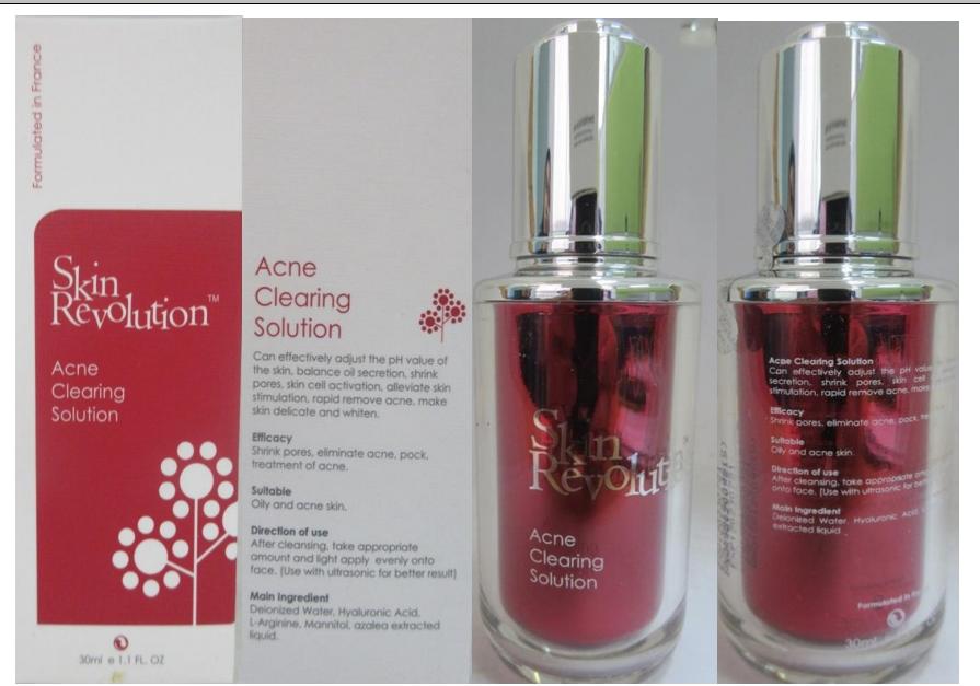 PUTRAJAYA: Bahagian Regulatori Farmasi Negara (NPRA), Kementerian Kesihatan mengesan satu produk kosmetik iaitu Skin Revolution Acne Clearing Solution yang mengandungi racun berjadual, clindamycin dan metronidazole.