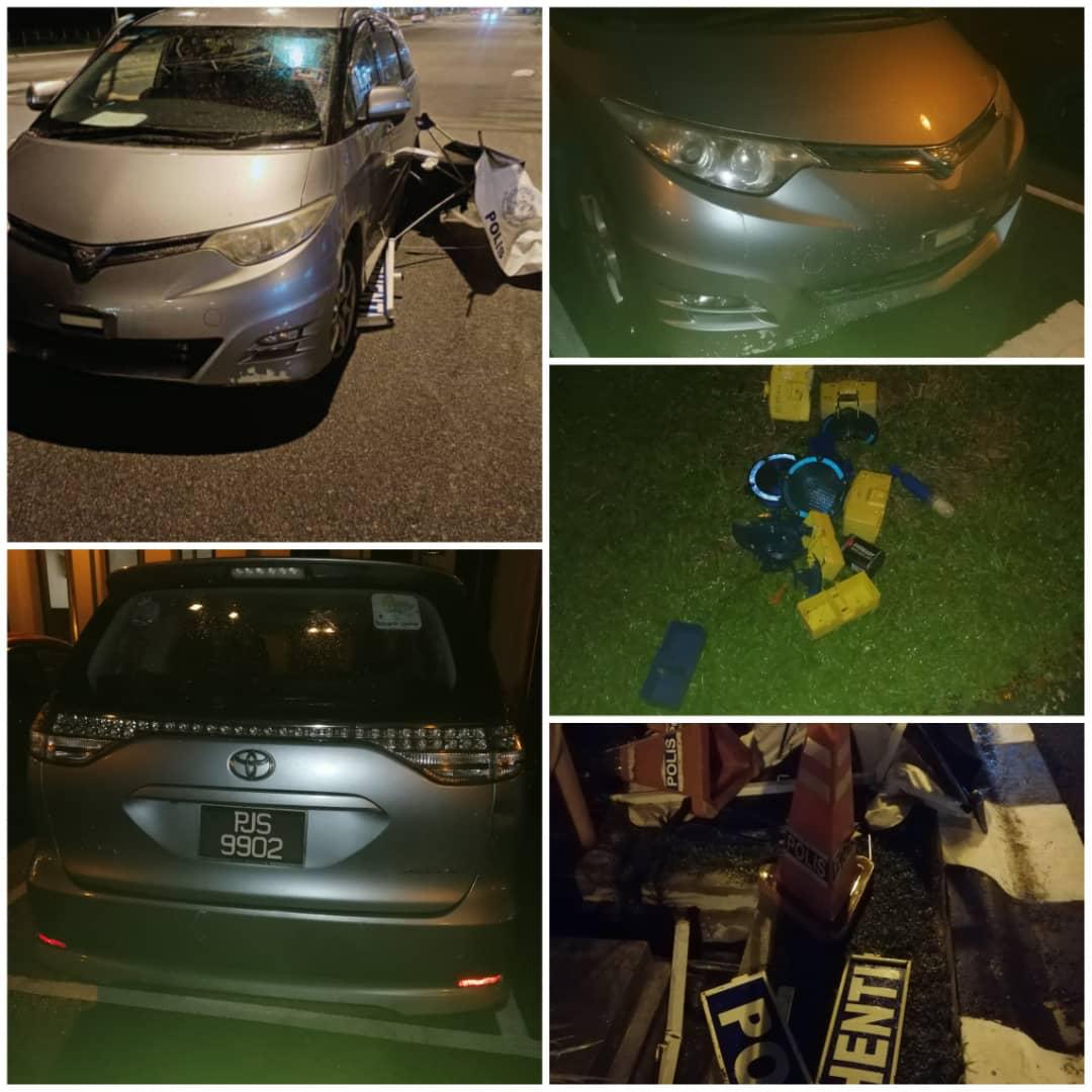 “MPV itu terus merempuh beberapa kon, lampu polis, papan tanda pemeriksaan polis dan payung sebelum melarikan diri,” katanya ketika dihubungi hari ini.