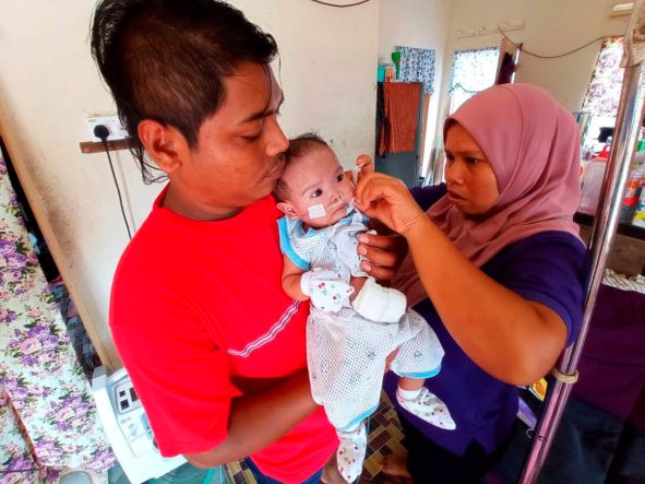 Mohd. Suhaimi Jasmin, 25, bekata, bayinya Nur Qaira Qalisha, lima bulan, mengalami masalah saluran pernafasan sempit sejak lahir selain turut menggunakan saluran tiub khas untuk menyusu.