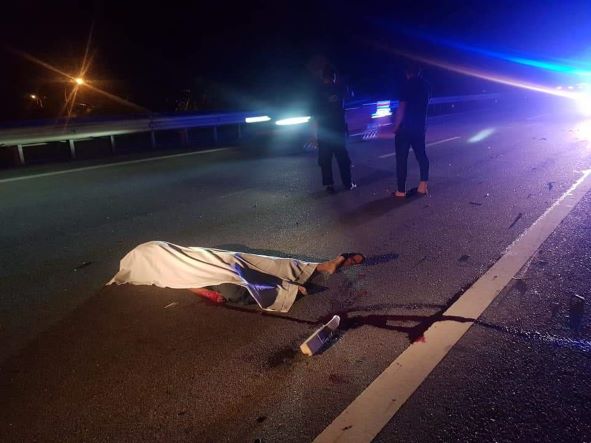 “Sebaik tiba di tempat kejadian, mangsa dipercayai tidak sempat mengelak dan melanggar seekor lembu yang berada di lorong kiri laluan menyebabkan dia terpelanting sebelum terjatuh ke atas cermin hadapan sebuah kereta Proton Pesona.