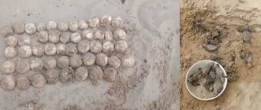 “Bertindak atas aduan tersebut, kami bersama seorang pemungut telur penyu berdaftar menjalankan pemeriksaan terhadap sarang tersebut dan menjumpai dua ekor anak penyu yang mati dalam pasir.