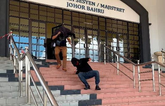 JOHOR BAHRU: Seorang daripada dua pegawai Suruhanjaya Pencegahan Rasuah Malaysia (SPRM) nyaris jatuh tangga ketika cuba mengelak wajahnya dirakam media dalam kejadian di Mahkamah Sesyen di sini hari ini.