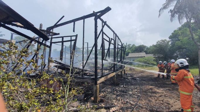 DUNGUN: Seorang warga emas yang lumpuh separuh badan, nyaris maut selepas rumah sewanya musnah dalam kebakaran di Kampung Batu 48, di sini hari ini.
