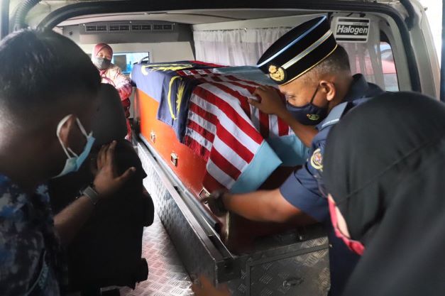 Van yang membawa jenazah Kapten Mohamad Affendi bagaimanapun hanya bergerak meninggalkan pekarangan unit forensik kira-kira pukul 2 petang ini. – UTUSAN
