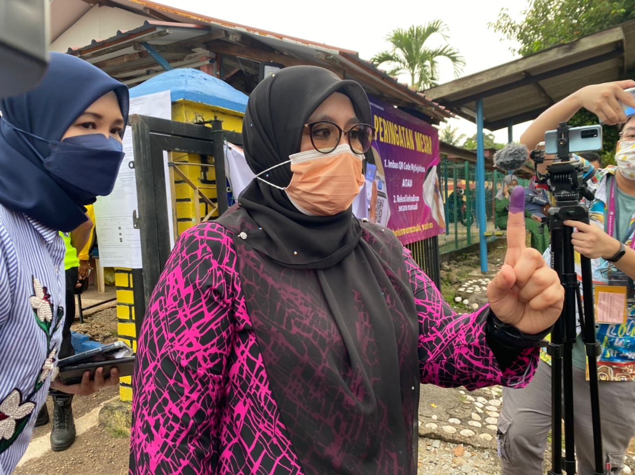 Terdahulu, Mas Ermieyati tiba di Pusat Mengundi Sekolah Kebangsaan (SK) Ramuan China Besar di sini pada pukul 7.53 pagi bagi menunaikan tanggungjawab mengundi sempena Pilihan Raya Negeri (PRN) Melaka.