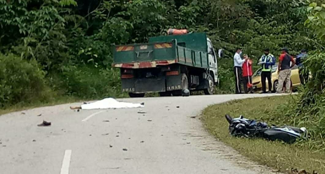 Ketua Polis Daerah, Superintenden Shamsudin Mamat, berkata, motosikal yang memasuki laluan lori telah merempuh bahagian tepi sebelah kanan kenderaan tersebut.