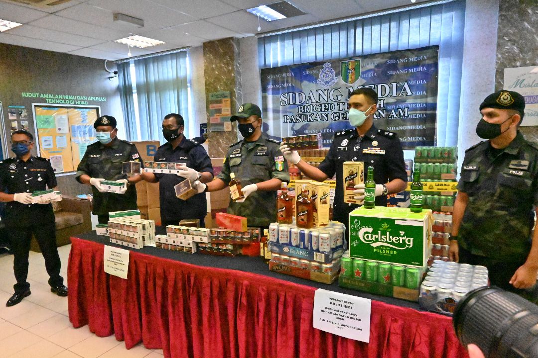 Komander PGA Briged Tengah, Senior Asisten Komisioner Muhammad Abdul Halim berkata, hasil pemeriksaan di premis tersebut, pasukannya menemukan 2,097 karton rokok dan 483 kotak arak pelbagai jenama bernilai RM963,684.21.