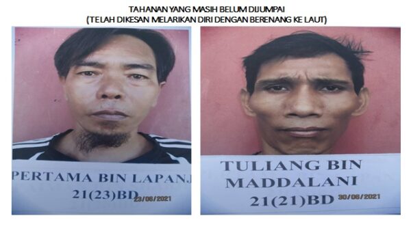 Ketua Polis Daerah, Deputi Superintenden Batholomew Ak Umpit berkata, dua tahanan iaitu Pertama Lapanji dan Tuliang Madalani dikesan melarikan diri dengan cara berenang ke laut.