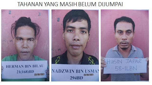 Lima tahanan yang masih dikesan ialah Nadzwin Usman, 24; Herman Bilau, 35; Husin Japar, 43; Pertama Lapanji, 40, dan Tuliang Maddalani, 35.