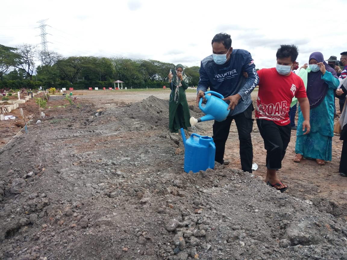 Jenazah termasuk empat yang disahkan positif Covid-19 dikebumikan mengikut turutan usia bermula daripada Allahyarham Norul Naziah yang juga ibu kepada keluarga itu.
