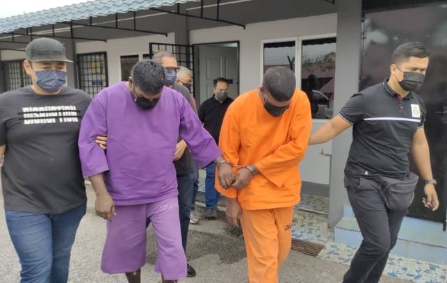 Tertuduh, A. Devadas, 41, yang merupakan seorang pengawal keselamatan dan P. Xavier, 43, yang bekerja sebagai pemandu lori mengangguk faham selepas pertuduhan dibacakan di hadapan Majistret, V.Vanita.