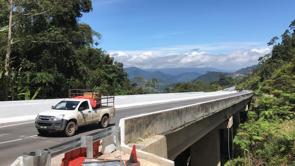 GUA MUSANG: Jalan utama menghubungkan Tanah Tinggi Lojing dengan Cameron Highlands, Pahang, dekat sini yang pernah runtuh awal tahun lalu, selamat untuk dilalui semua jenis kenderaan ketika musim tengkujuh ini.