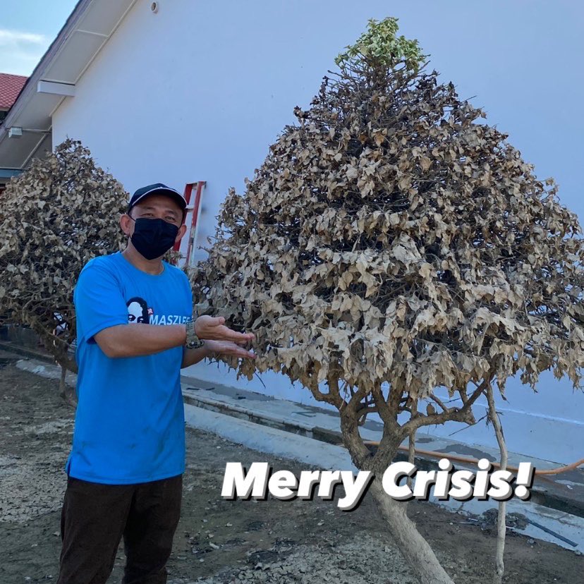 ‘Sindiran’ itu berupa gambar beliau menunjukkan pokok menyerupai pokok krismas yang diselaputi lumpur ekoran banjir.