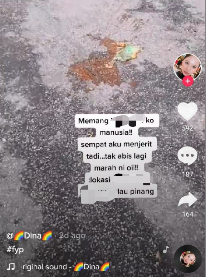 Menerusi video tersebut, wanita dipercayai pemilik akaun TikTok itu merakam keadaan seorang lagi wanita dipercayai adik perempuannya yang didakwa terkena najis yang dilempar dari tingkat atas flat ke kawasan tempat meletak kereta di situ.