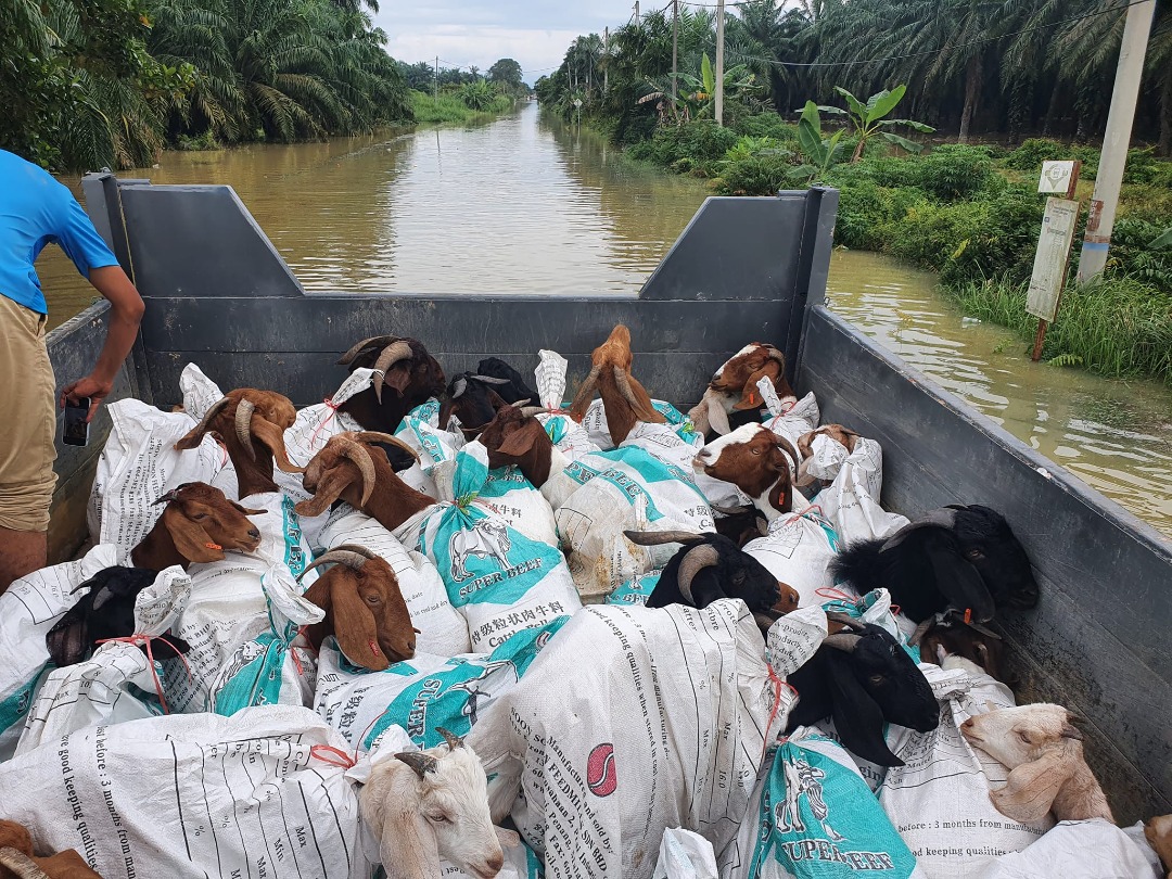 Terdahulu, JPV melalui kenyataan awal memaklumkan bahawa mereka bersiap sedia memindahkan sejumlah 50 ekor kambing yang terperangkap setelah laluan darat terputus dengan kerjasama Institut Penyelidikan dan Pembangunan Pertanian Malaysia (MARDI) Tanjung Karang yang meminjamkan sampan bagi misi pemindahan.