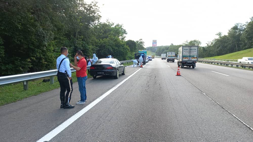 “Sebaik sahaja tiba di lokasi, tayar belakang sebelah kiri kereta itu pancit menyebabkan mangsa terpaksa memberhentikan kenderaan di bahu jalan dan menukarnya.