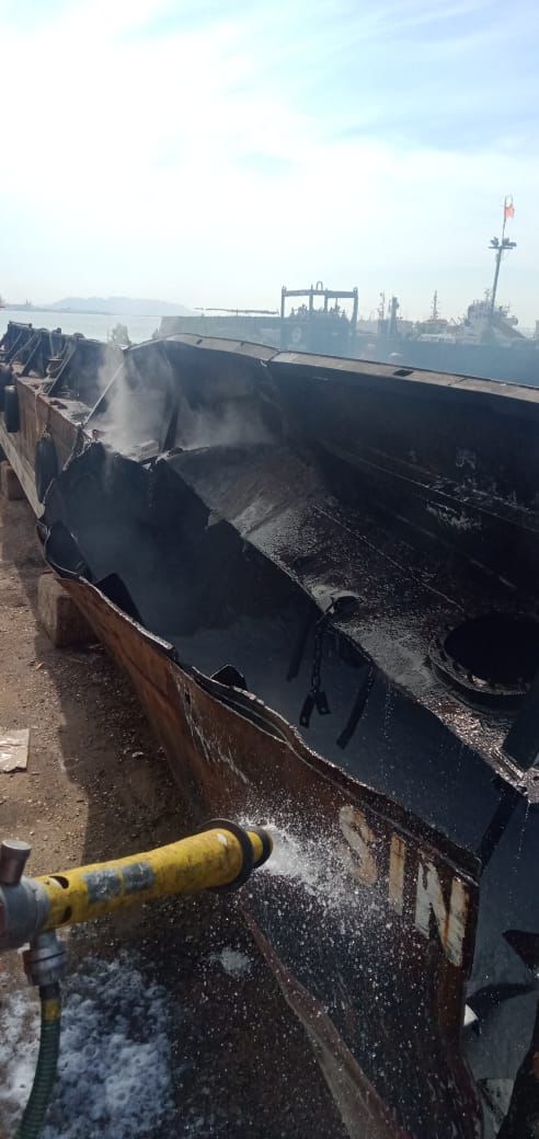 Menurutnya, kebakaran melibatkan sebuah tongkang dengan anggaran peratusan kemusnahan kira-kira 20 peratus.