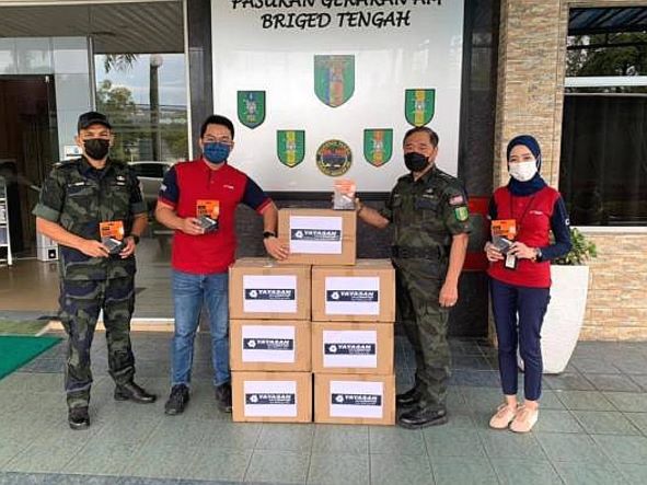 Sumbangan tersebut diterima Timbalan Komander Briged Tengah Pasukan Gerakan Am Cheras Selangor, Chew Tham Soon dan Ajutan Briged Tengah Pasukan Gerakan Am Cheras Selangor, Mohd. Izhan Ismail.- UTUSAN ONLINE