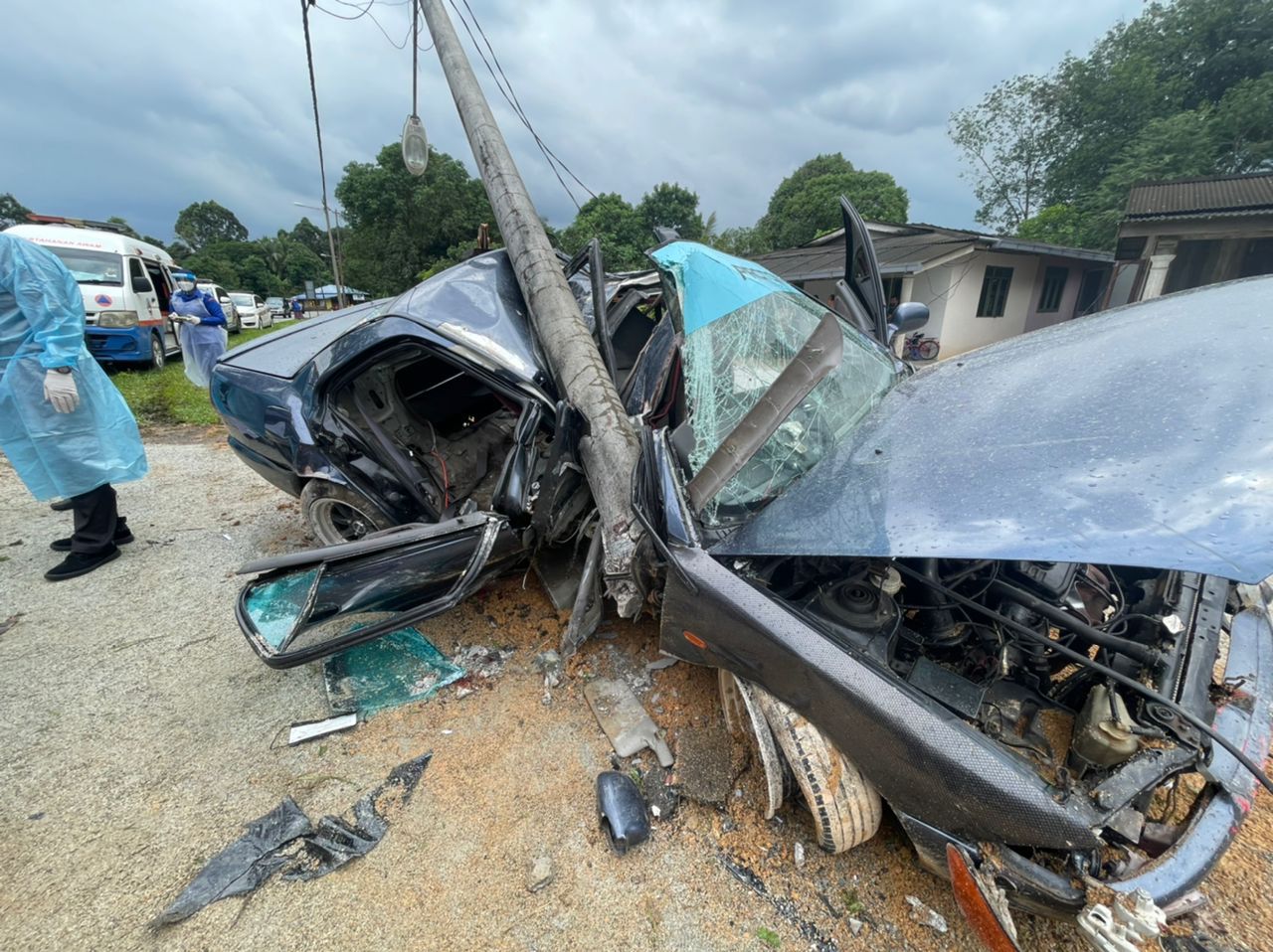 “Proton Wira dipandu mangsa tiba-tiba hilang kawalan lalu terbabas ke kiri sebelum melanggar tiang elektrik.