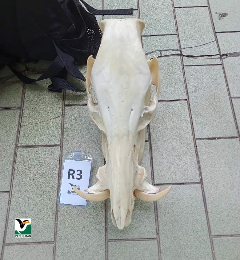 Malah, mereka juga menjumpai bahagian hidupan liar yang disyaki sebagai kulit, daging dan trofi daripada babi hutan atau disebut wild boar atau nama saintifiknya iaitu Sus scrofa.