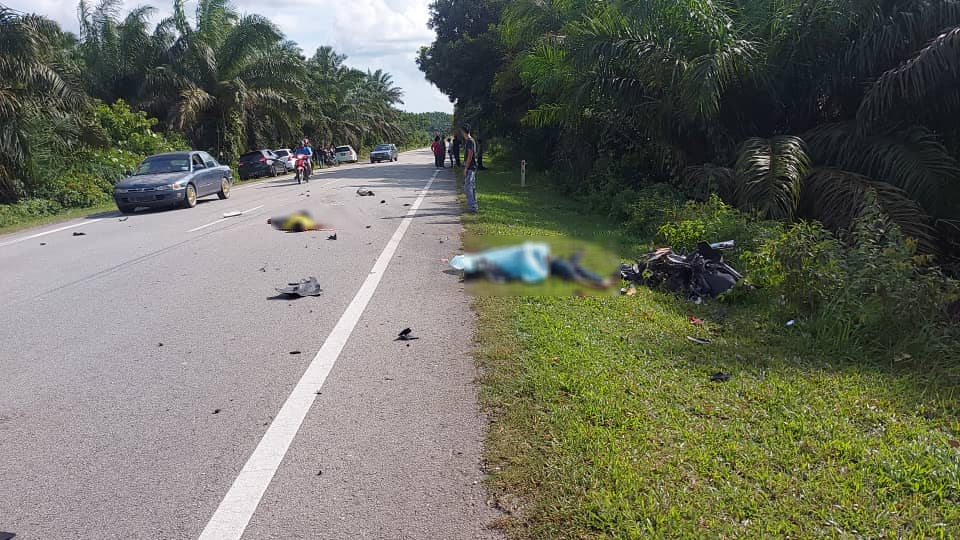 Mohd. Faizal dan Termizi yang menunggang motosikal Yamaha Lagenda meninggal dunia di lokasi kejadian selepas bertembung dengan Perodua Myvi.