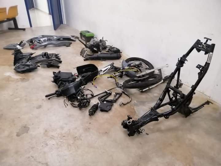 Ketua Polis Daerah Barat Daya, Superintenden Kamarul Rizal Jenal berkata, dalam tangkapan tersebut polis turut menjumpai rangka dan beberapa komponen motosikal yang telah dileraikan di rumah salah seorang suspek di Sungai Ara.