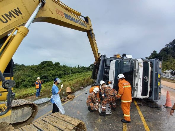 “Pasukan operasi turut mendapatkan bantuan jentera jengkaut dari TRC Pan Borneo untuk menstabilkan lori dan mengangkat lori untuk mengeluarkan mangsa,” katanya.