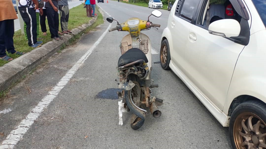 Ketua Polis Daerah Marang, Deputi Superintenden Mohd. Zain Mat Dris berkata, kemalangan melibatkan motosikal Modenas Kriss ditunggangi mangsa dan sebuah Perodua Myvi dipandu wanita berusia 26 tahun.