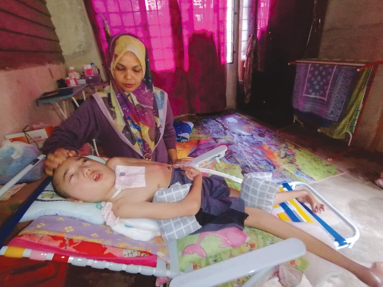 Tambah Asmah, anaknya dirawat di Hospital Sultanah Nur Zahirah, Kuala Terengganu selama sebulan dan doktor sahkan lumpuh seumur hidup akibat kekurangan oksigen dalam otak.