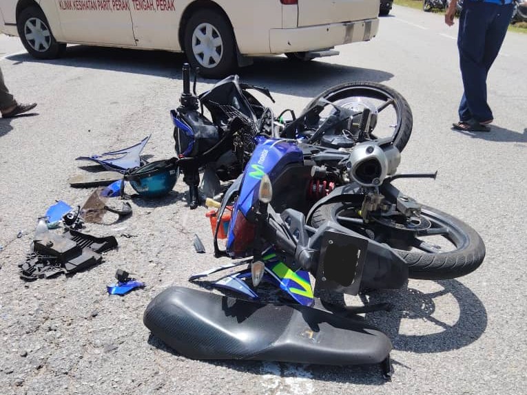 PARIT: Seorang lelaki maut akibat tercampak selepas motosikal ditunggangnya terlibat dalam kemalangan membabitkan sebuah kereta di hadapan Dewan Kampung Tua, di sini hari ini.