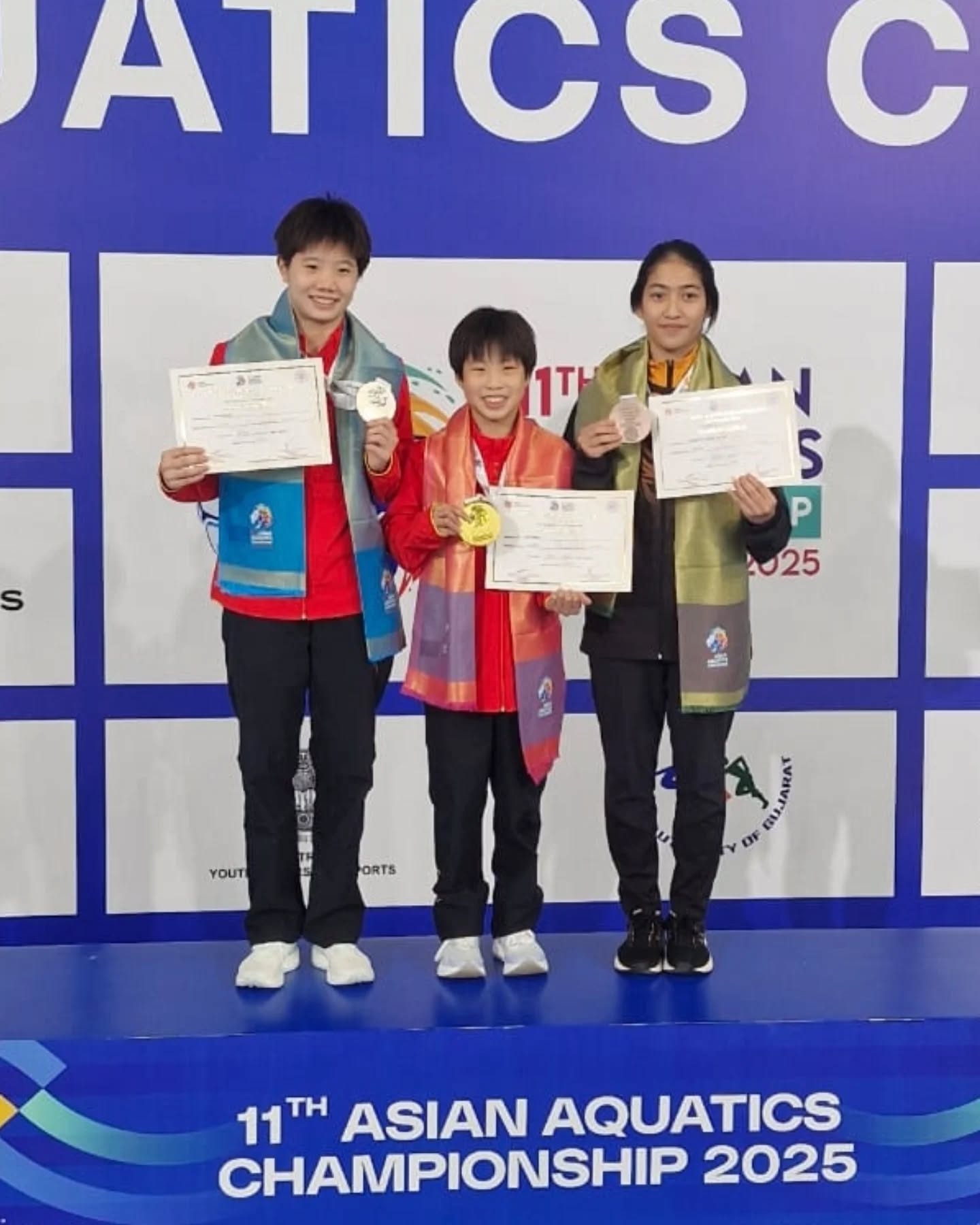 PETALING JAYA: Terjunan terakhir penuh berani Nur Eilisha Rania Abrar Raj menghadiahkan Malaysia pingat gangsa acara platform 10 meter (m) wanita pada Kejohanan Akuatik Asia di Ahmedabad, India, semalam.