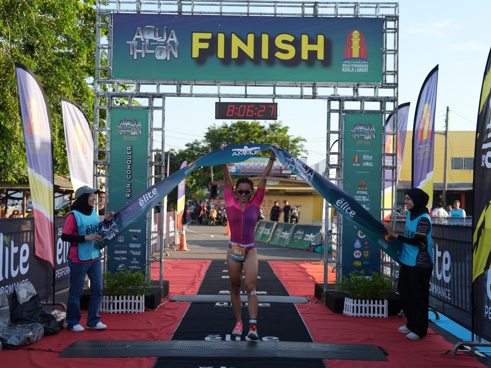 Atlet berusia 27 tahun itu menamatkan cabaran melibatkan 750 meter renangan dan 5 kilometer larian dengan catatan masa 34 minit 33 saat, jauh meninggalkan pesaing terdekat, Chan May Yan (37:37) serta Shannon Liaw (40:49).
