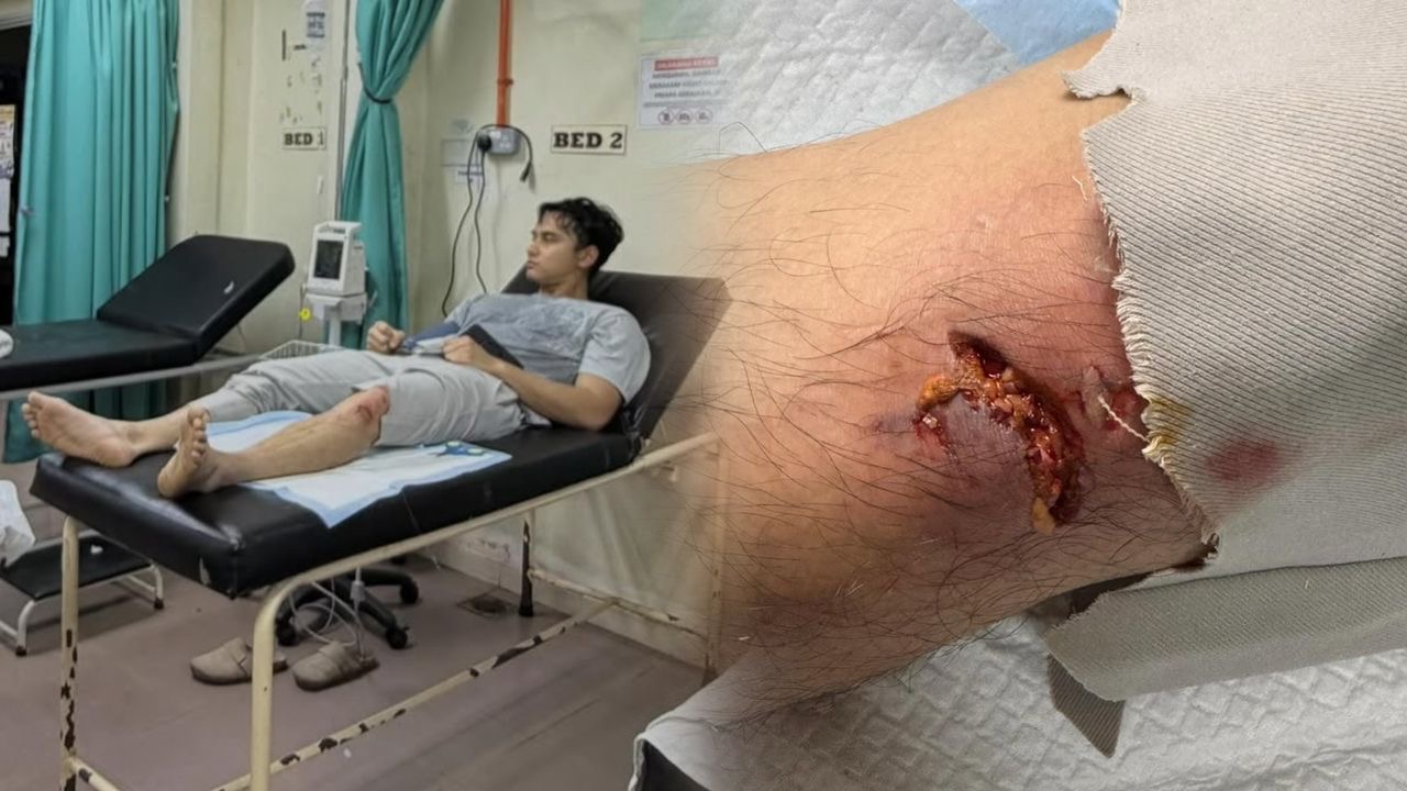 “Sepatutnya saya melompat dari tembok turun ke sungai dan berenang ke seberang, namun saya tergelincir, kaki tersadung pada batu dan akhirnya menerima enam jahitan,” katanya menerusi perkongsian di media sosial.