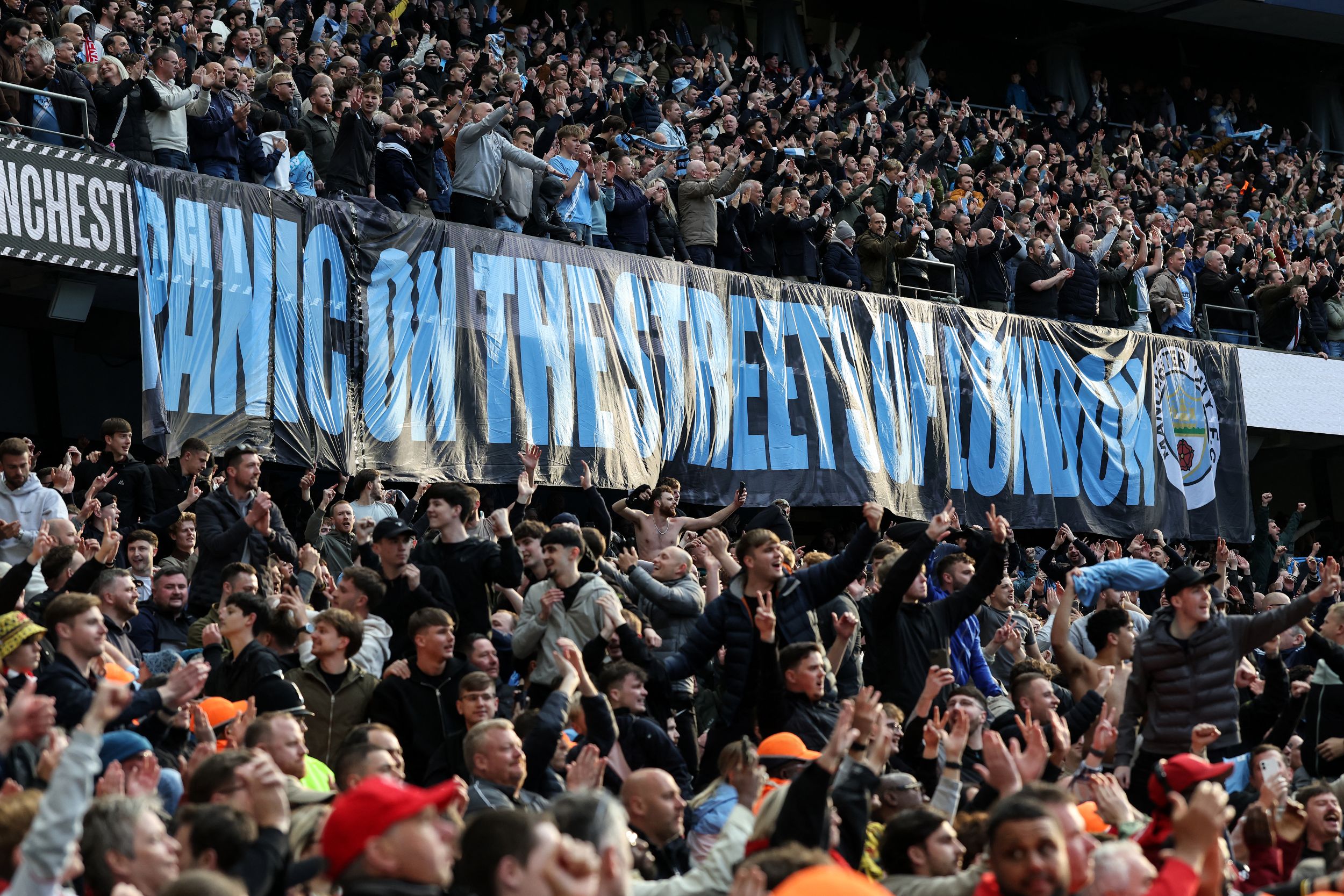 Malah, penyokong tuan rumah turut mempamerkan sepanduk bertulis ‘Panic on the streets of London’, manakala pemain City melakukan ‘lap of honour’ mengelilingi padang sejurus wisel penamat dibunyikan.